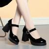 Fashion Platform High Heels for Women's Fashion Shallow Mouth Buckle Round Chunky Heel Mary Jane Shoes Spring and Summer New Women Pumps