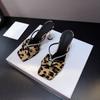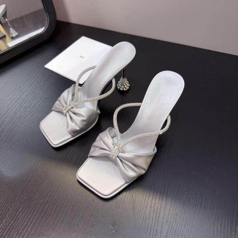 Fashion Satin Heeled Women's Shoes Summer New Square Toe Open Toe Bow Rhinestone Anti-slip Wear-resistant Outer Wear Slippers