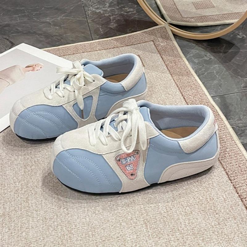 Mode Ballerinas Herbst Neu Runde Zehenpartie Colorblock Schnürung vorne Weiche Sohle Rutschfest Abriebfest Sneaker