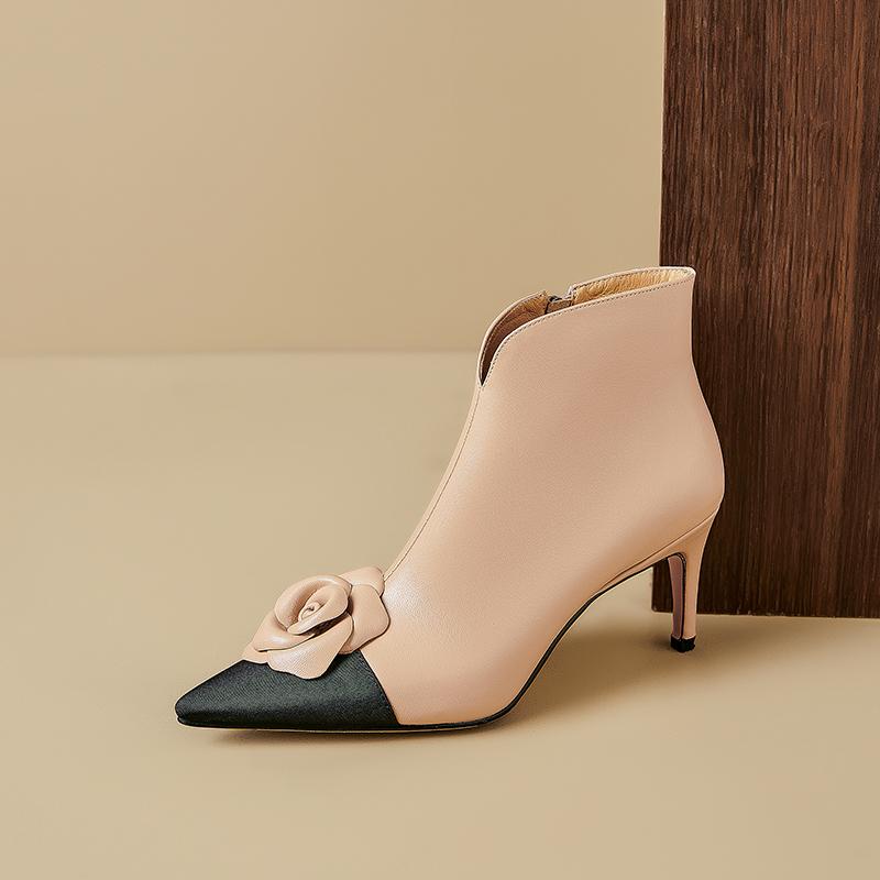 Mode 2025 Stiefeletten High Heels Damenstiefel Pfennigabsatz Kurze Stiefel Echtes Leder Winter Modern Lederschuhe Damenschuhe
