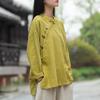 Johnature Women Vintage Shirts Tops Stand Long Sleeve Patchwork Color Blouses Spring Loose Shirts