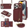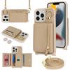Für iPhone 13 Pro Max/12 Pro Max Hülle Litschi-Textur Kartenfach Leder+TPU Handyhülle mit langem Umhängeband