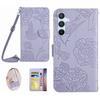 HT03 Für Samsung Galaxy A16 5G/A16 4G Hülle Sturzsichere Leder Handyhülle Schmetterling Blumen Prägung