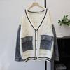 Autumn and winter new medium and long denim splicing knitted cardigan loose design sweater jacket women