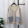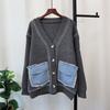 Autumn and winter new splicing denim pocket sweater jacket high-end loose and versatile knitted cardigan women