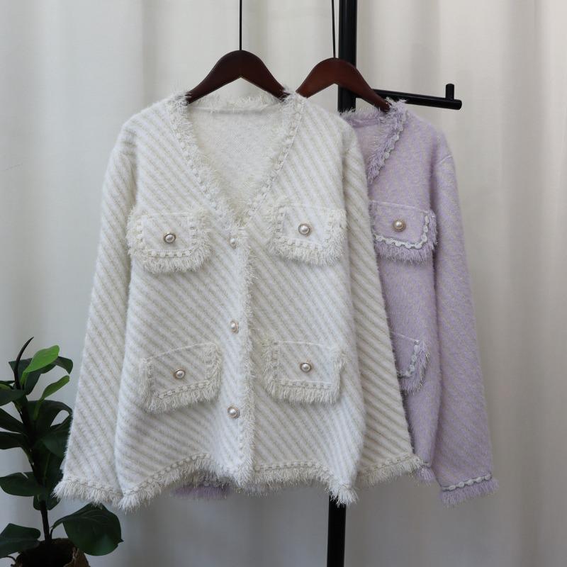 Herbst und Winter neue lockere Strickjacke aus Imitat-Nerz-Samt, feminin, weich, wachsartig, Pulloverjacke
