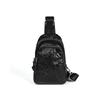 Whatna Tanned Natural Cowhide Leather Crossbody Bag for Genuine Thick Leather with Earphone 13541 Antique-Style Bag, One-Shoulder Men, Hole, (Black)
