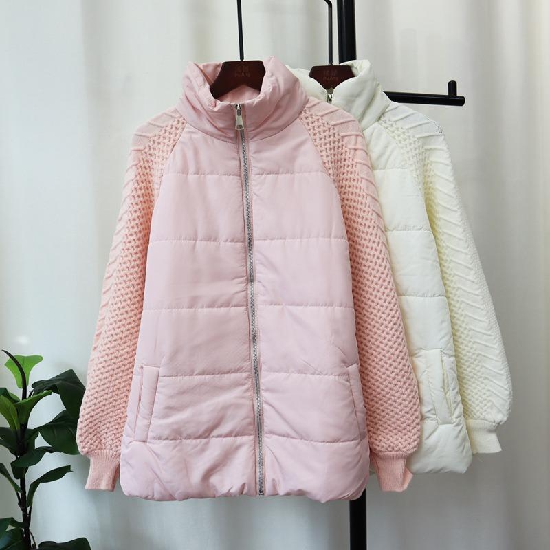 Zipper splicing cotton sweater jacket autumn and winter new thickened loose temperament knitted cardigan women