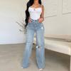 Damen Jeans Lange Hohe Taille Zerrissene Kante Bequeme Hose Mit Weitem Bein