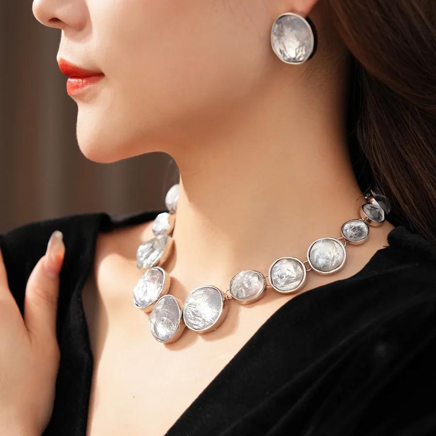 2025 Mode Runde Harz Geometrische Zirkon Sets für Frauen Leichter Luxus Einfach High-End Übertriebene Ohrringe Halskette Set