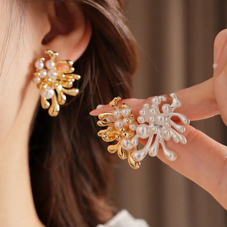 Vergoldete Feuerwerk-Perlen-Ohrstecker Mode Europäisch Amerikanisch Persönlichkeit High-End Ohrring für Frauen Luxus Zirkon