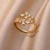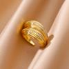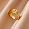 Zirkon Kristall Geometrische Ringe für Damen Edelstahl Goldfarbe Verstellbarer Fingerring Trendiger Hochzeitsschmuck Luxus