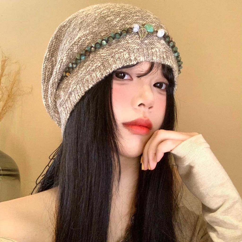 Sweet and Versatile Ethnic Style Knitted Pile Hat Autumn and Winter Casual Fashion Tie-dye Pullover Hat American Retro Cold Hat Trend