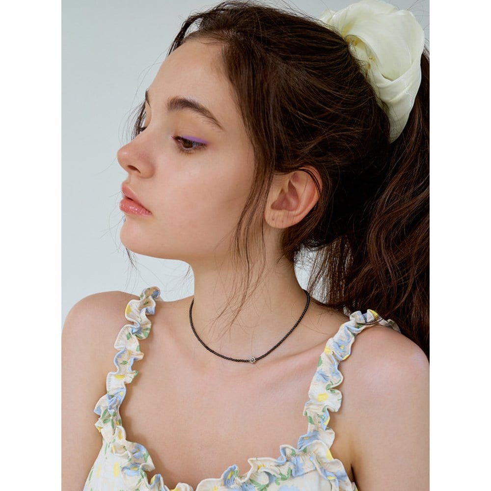 Black Gemstone Flower Necklace