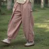 Johnature Damen Vintage Weitbeinige Hosen Frühling Elastischer Bund Locker Weiche Hosen Einfarbig Taschen Damen Hosen