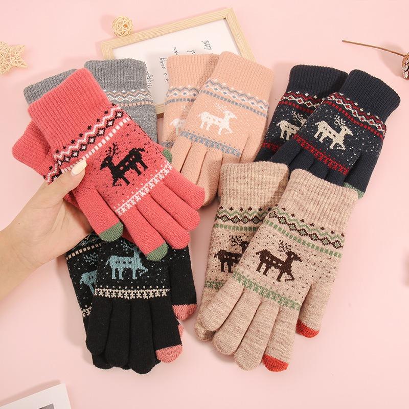 Touchscreen-Handschuhe Damen Winterstand Samt verdickt Kältebeständig Hirschwolle Warm Gestrickte Handschuhe