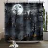 Halloween Duschvorhang Horror Mondnacht Kürbis Schädel Skelett Gruseliges Schloss Hexe Geist Friedhof Wasserdicht Badezimmervorhänge