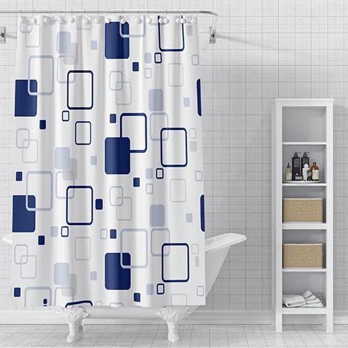 BohoGeometrischBlauThemaBadezimmerDuschvorhangNiedlich3D-GedrucktWasserdichtStoffFürKinderMitHakenGeometrischesMusterDekorativer Duschvorhang