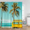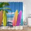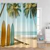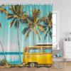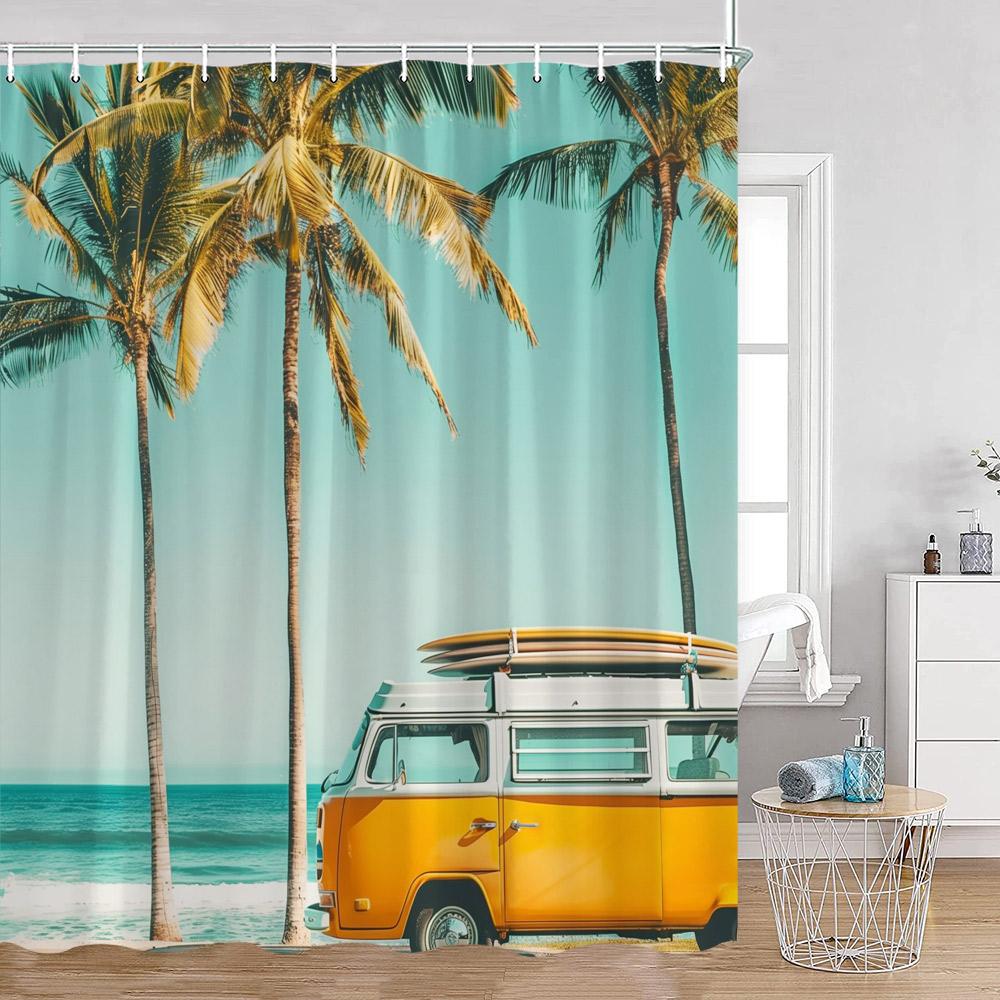 Camping Surf Duschvorhänge Sommerurlaub Reisender Wohnmobil Strand Kokospalmen Meerufer Badezimmerdekorationen Retro Badevorhänge