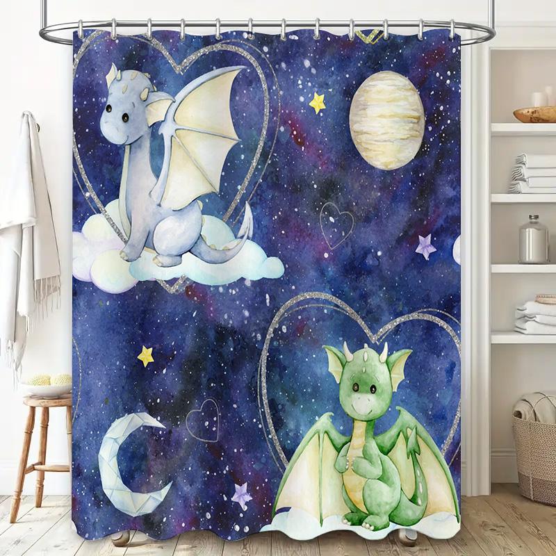 Sternenhimmel Drache Duschvorhang Kinder Badezimmer Dekor Blau Galaxie Druck Wasserdichter Stoff Perfekte Geschenkidee für Kinderzimmer D