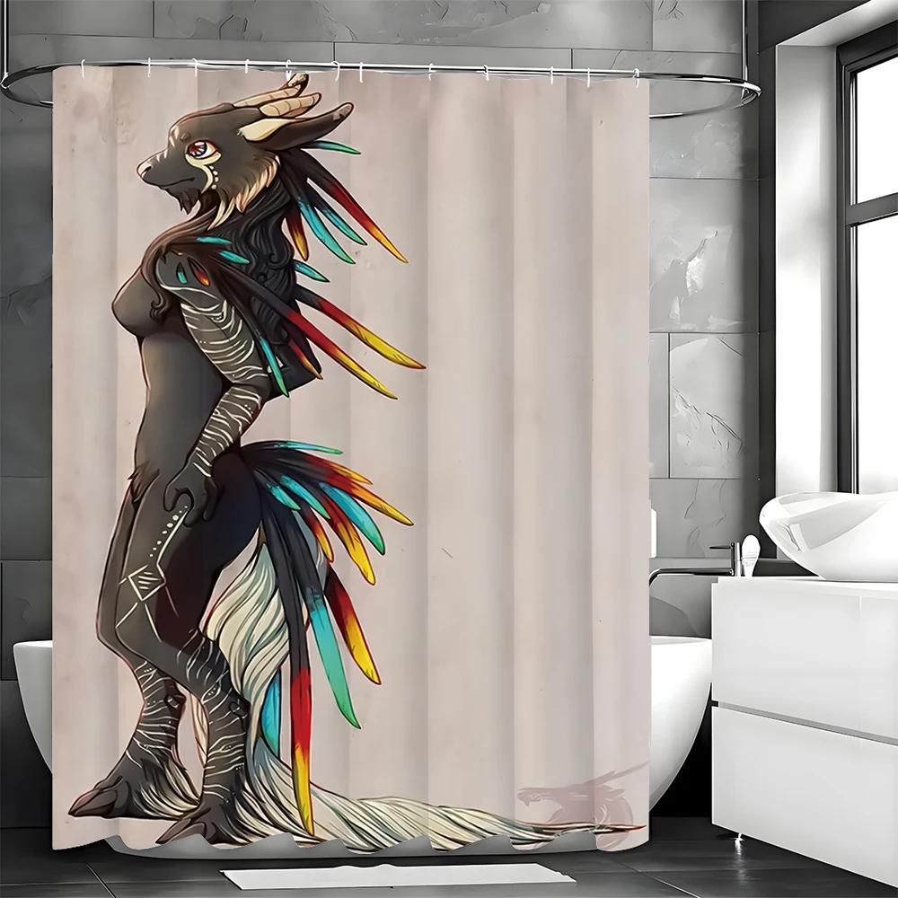 Cartoon Drache Duschvorhang, Badezimmer Dekorativer Duschvorhang, Wasserdichter Duschvorhang mit Haken