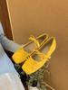 Innere Erhöhung Schleife gelb Mary Jane Einzelschuhe Damenschuhe 2025 Frühling und Sommer mit Rock Retro Ballerinas