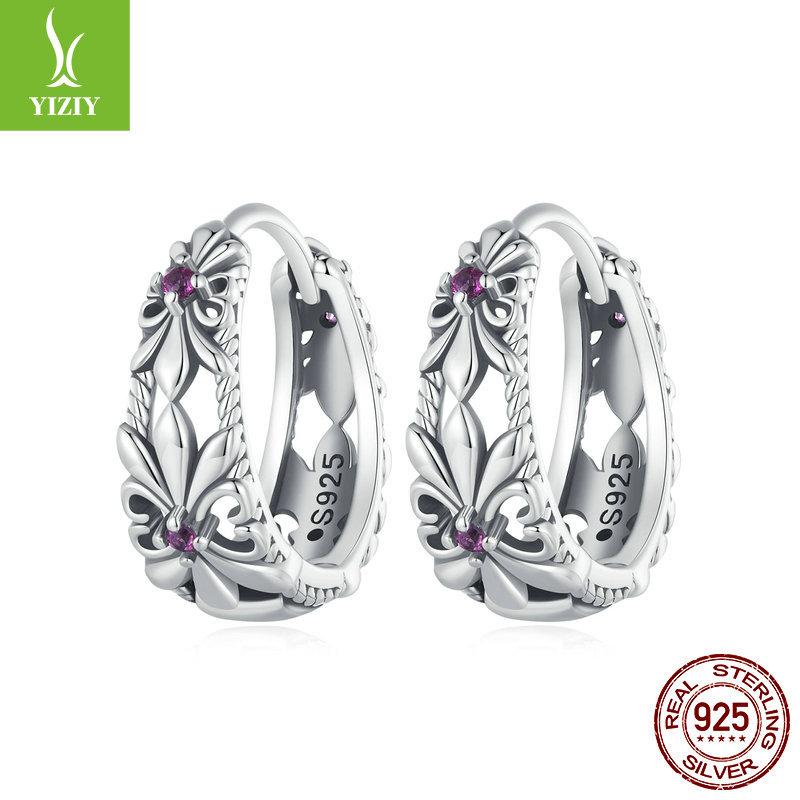 Lila Iris Retro Ohrbügel Damen, Mysteriös Elegantes Muster S925 Sterlingsilber Ohrringe