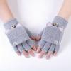 1 Paar Damen Winter Niedliche Katzenohr Halbfinger Klapphandschuhe - Weiche Winddichte Warme Handschuhe