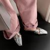 Französischer Nischendesign-Sinn Quadratkopf hohl gefaltet halb schleppend Metallschnalle Taschenkopf Hausschuhe tragen Damen Sommer kühl Hausschuhe