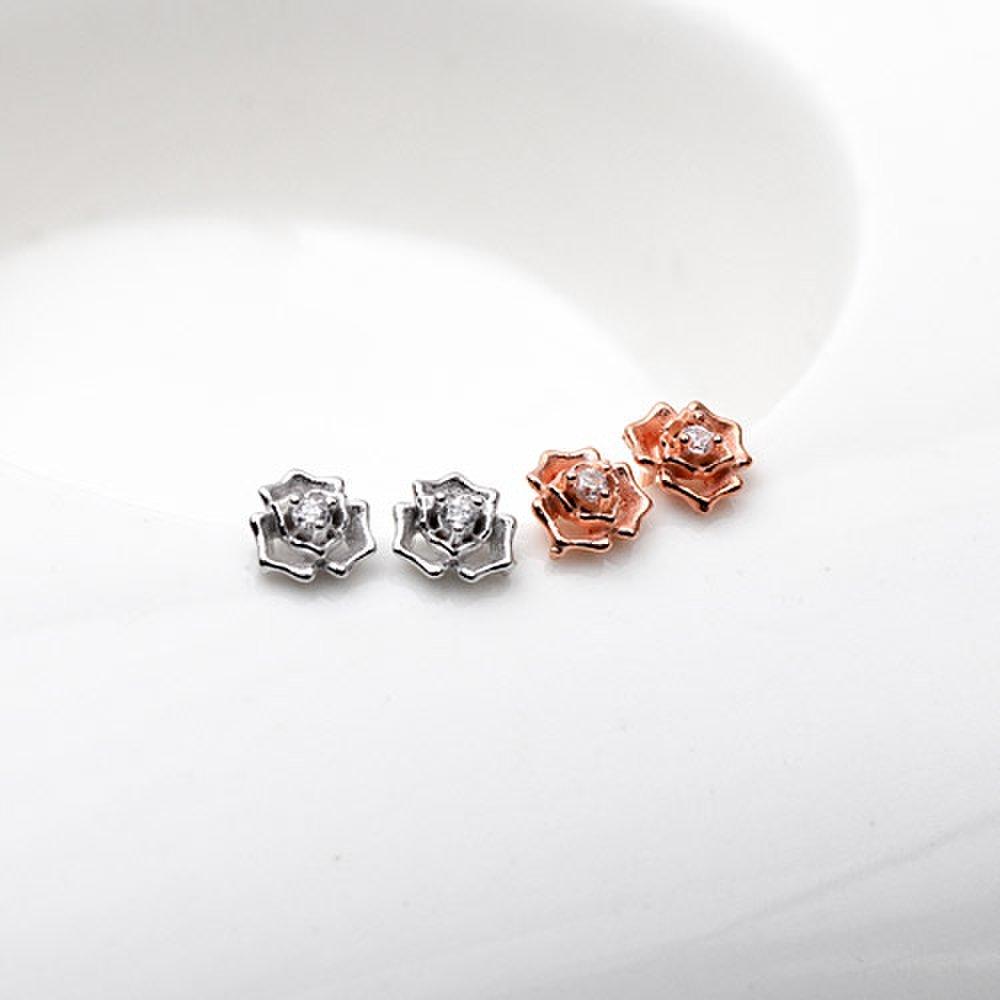 Voll Silber Rose Blume Zirkonia Ohrringe_Weiß