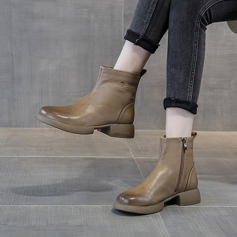 Die erste Schicht Rindsleder Kurzstiefel für Damen im Herbst und Winter 2025, die neuen Retro-Leder-Mode Chelsea kleine Lederstiefel für Damen