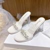 Transparente Strass-Sandalen Damen Sommer 2025 neu Außenbekleidung dicke Absätze hohe Absätze Fee Wort mit schönen Kristall-Slippern