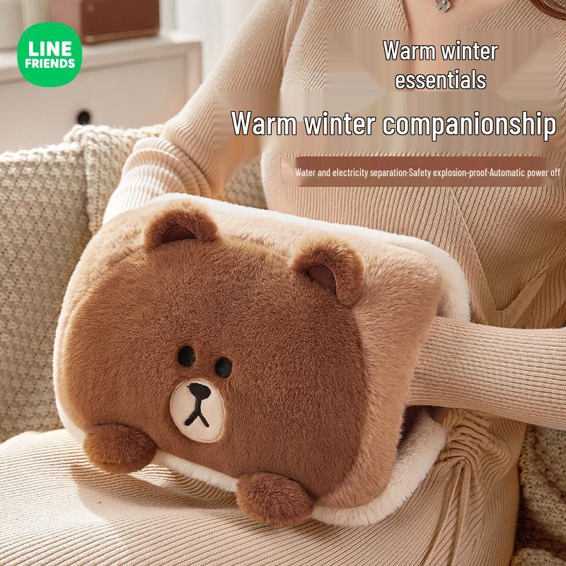 Wiederaufladbares Plüschkissen mit Braunbär-Motiv und Wärmflasche – Niedlicher Bettwärmer für Baby und Mädchen