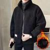 Herren Fleecegefütterter und Verdickter Baumwollmantel Herbst Winter Trendiger Übermantel Locker Geschnitten Kapuze Warmwetterjacke