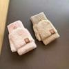 New half-finger covered plush gloves, autumn and winter flip knitted warm thickened bag cover, leaking finger imitation mink