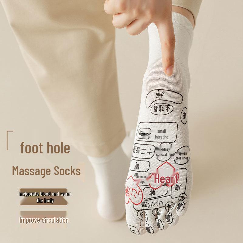 Damen Fünf-Zehen Plantar-Akupunkturpunkt Wadenlange Baumwollsocken - Antibakteriell, Desodorierend und Massage für Paare
