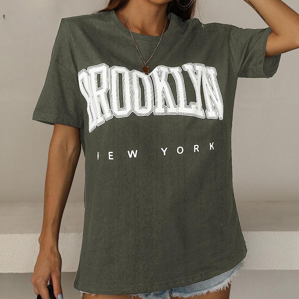 Damenmode Casual Letter Print Kurzarm O-Ausschnitt Lose T-Shirts und Tops
