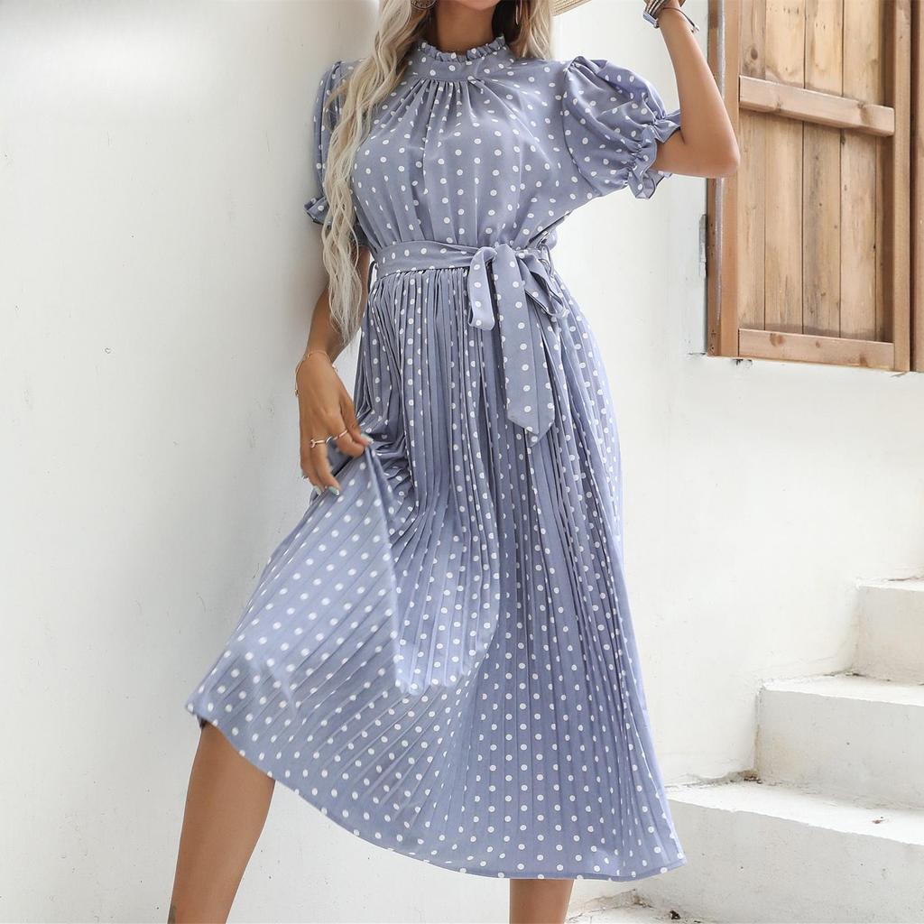 Damenmode Polka Dot Sommer Kurzarm O-Ausschnitt Freizeitkleider