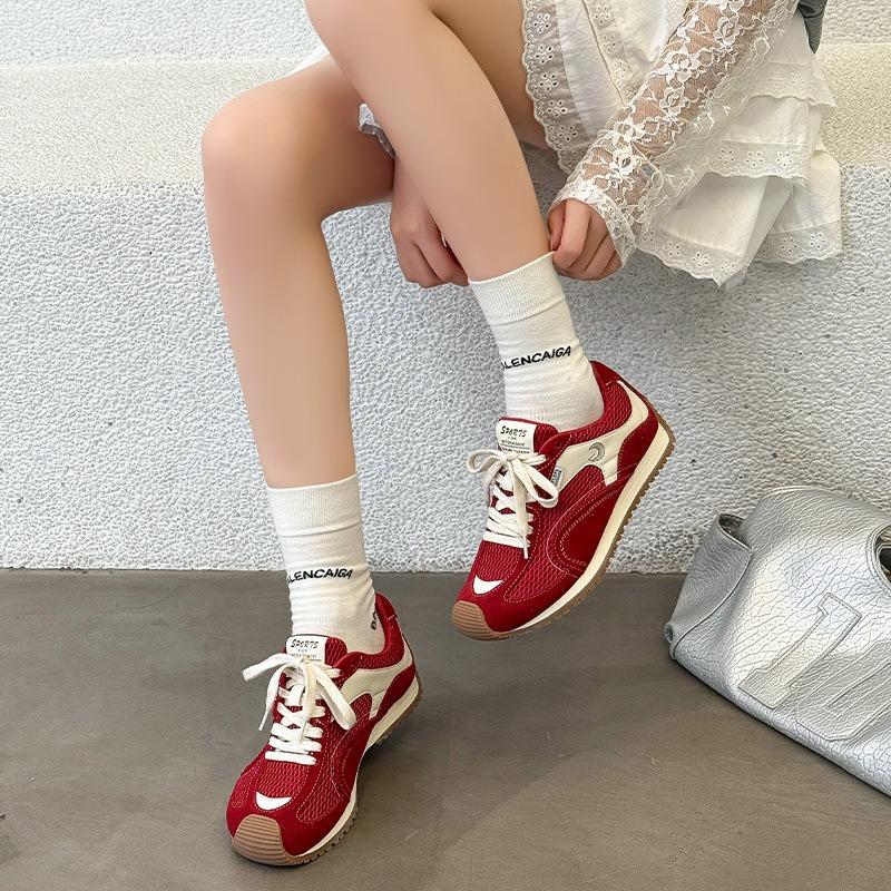 Damen Herbst Neu Leder Mesh Atmungsaktiv Leicht Flache Sohle Bequem Lässig Sport Waffelschuhe