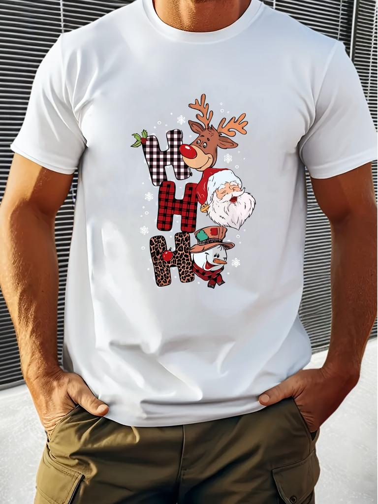 Herren Sommer Baumwoll Rundhals T-Shirt mit festlichem "Hohoho"-Design - Lässiges Kurzarm-Tee mit Weihnachtsmann