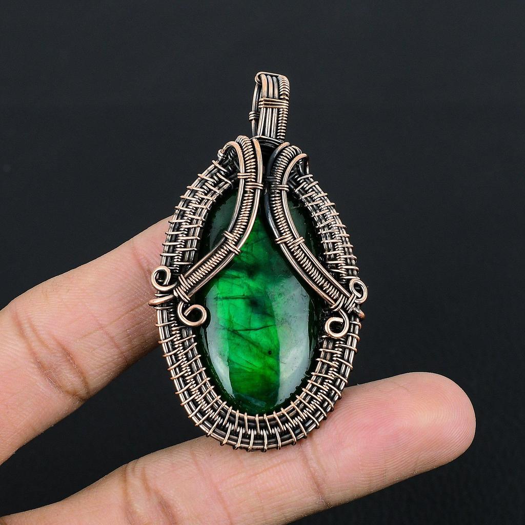 Grüner Blitz Labradorit Anhänger Edelstein Schmuck, 999 Kupferdraht gewickelter Anhänger, Handgefertigter Schmuck Geburtsstein Anhänger, Geschenk für Ihn