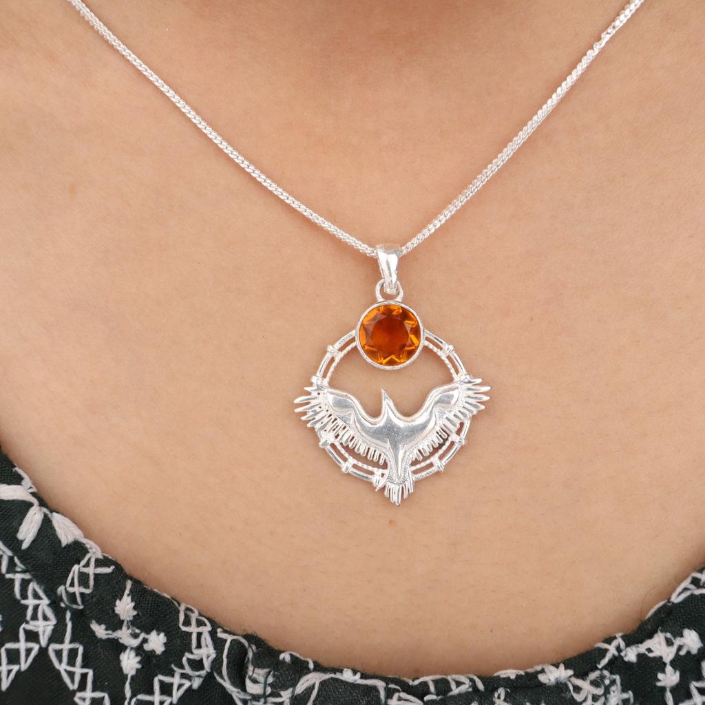 Citrine Gemstone 925 Sterling Silver Jewelry Handcrafted Pendant 1.43" For women CP-38-4