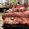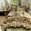Karomuster Bettwäscheset Doppelgarn Klassisches Vintage Bettbezugset Spannbettlaken Set 2 Kissenbezüge Einzelbett Twin Full Queen Größe