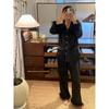 Dutch Original Order ~ Diamond Buckle Pink Feather Pajamas Women's Long Sleeve Pants Suit Ice Silk Classy Trendy Homewear