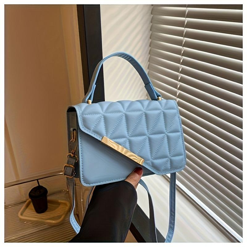 Diamond Quilted Pattern, Adjustable Shoulder Strap Fashion Small PU Crossbody Bag - White, Black, Khaki, Sky Blue, Messenger Bag, Lightweight