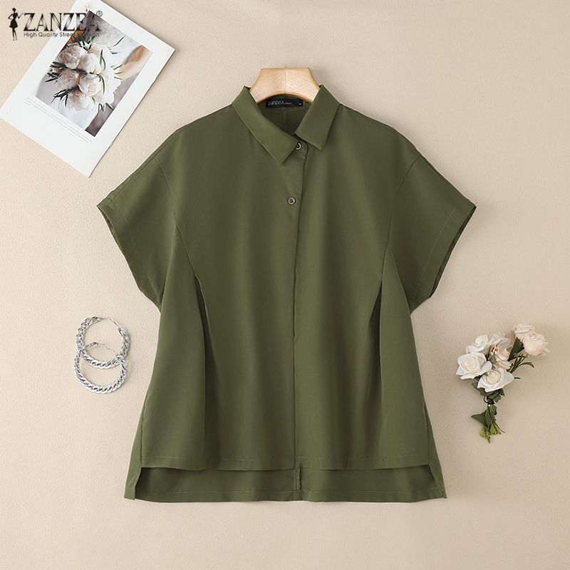 ZANZEA Damen Umlegekragen Locker Lässig Kurzarm Bluse