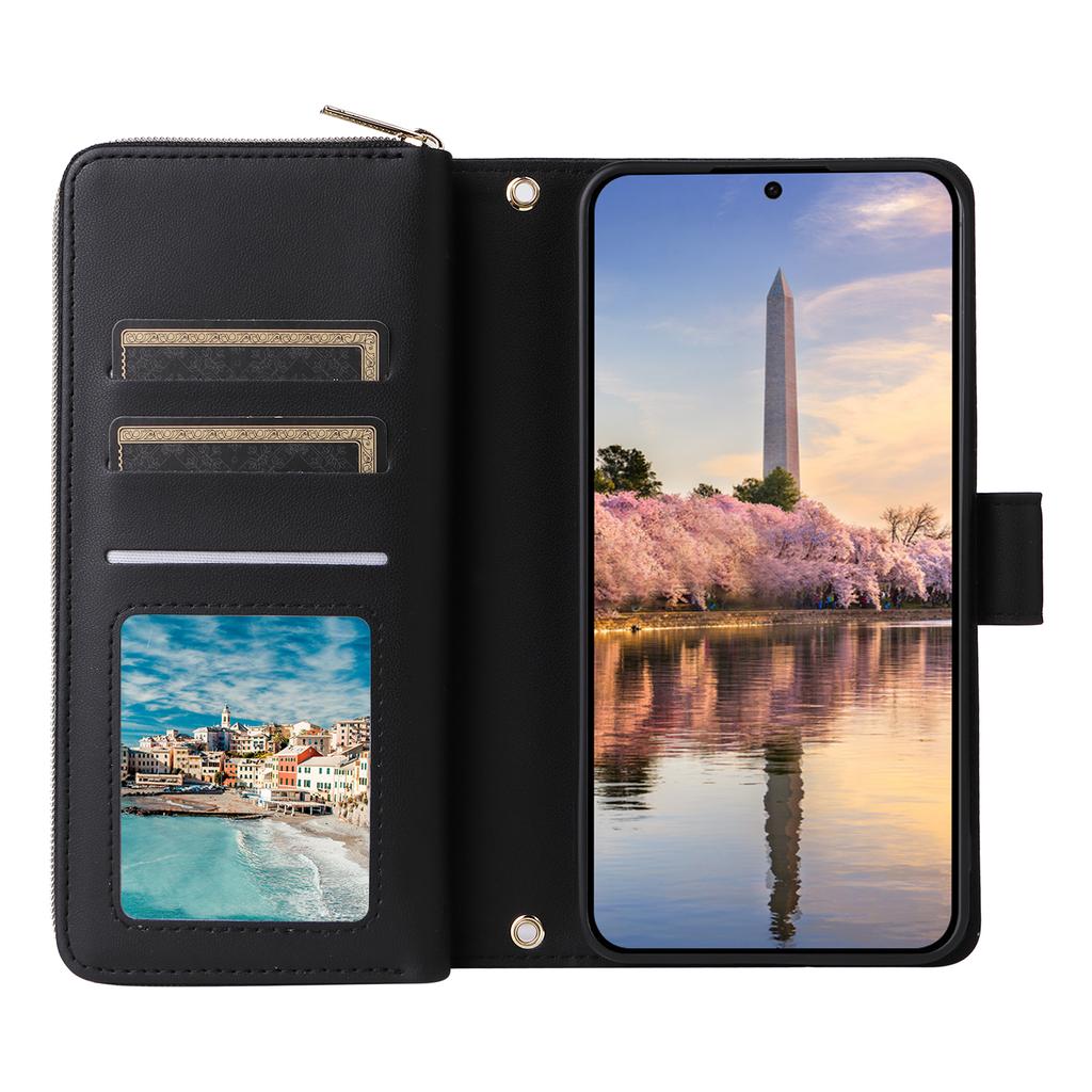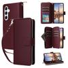 R20 For Samsung Galaxy A35 5G Case PU Leather Zipper Phone Cover with 2 Straps