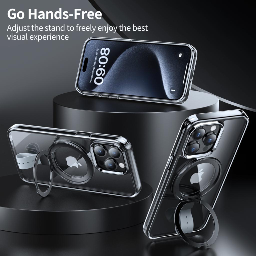 Für iPhone 14 Pro Max Magnetische Hülle Transparentes PC Hart Handyhülle Drehbarer Griffhalter