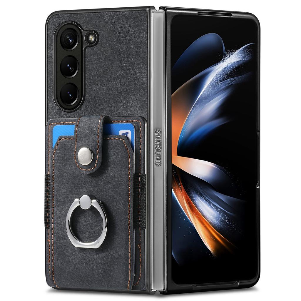 D2 Für Samsung Galaxy Z Fold6 5G Hülle Kartenfach Ring Ständer Leder+PC Handyhülle