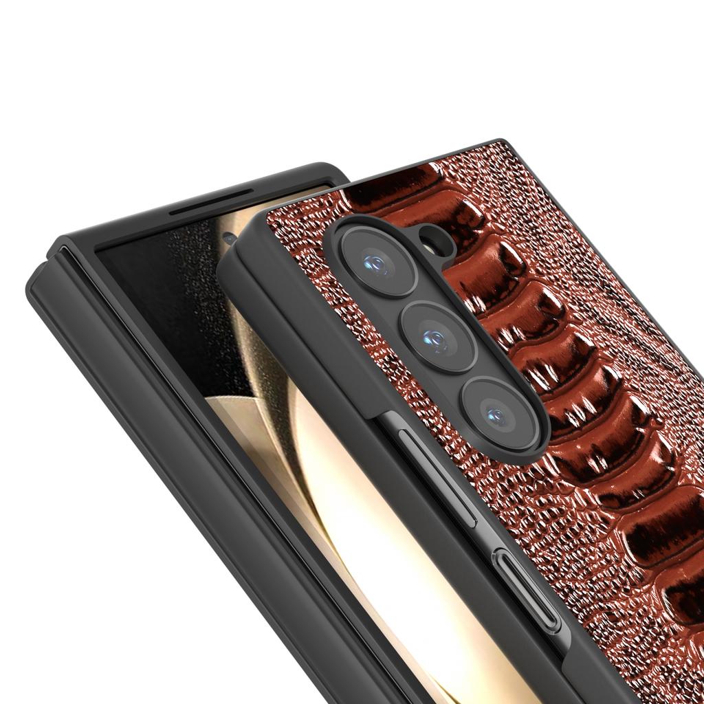 Für Samsung Galaxy Z Fold6 5G Hülle Krokodiltextur Echtes Rindsleder Rückseite